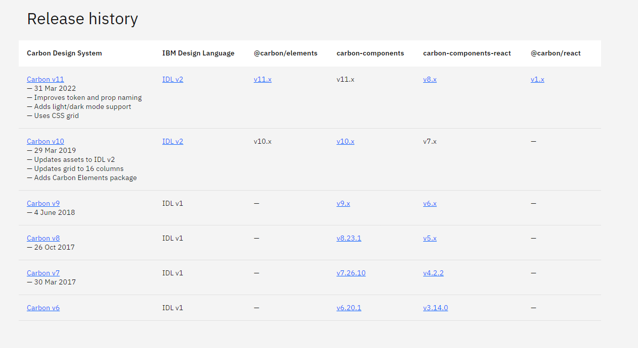 Carbon by IBM employs holistic versioning, releasing major updates that encompass the entire system. This strategy benefits IBM's vast and diverse user base, including large enterprises and complex applications. By bundling significant changes into major releases, Carbon ensures all components are updated consistently, maintaining visual and functional coherence across IBM's products.
