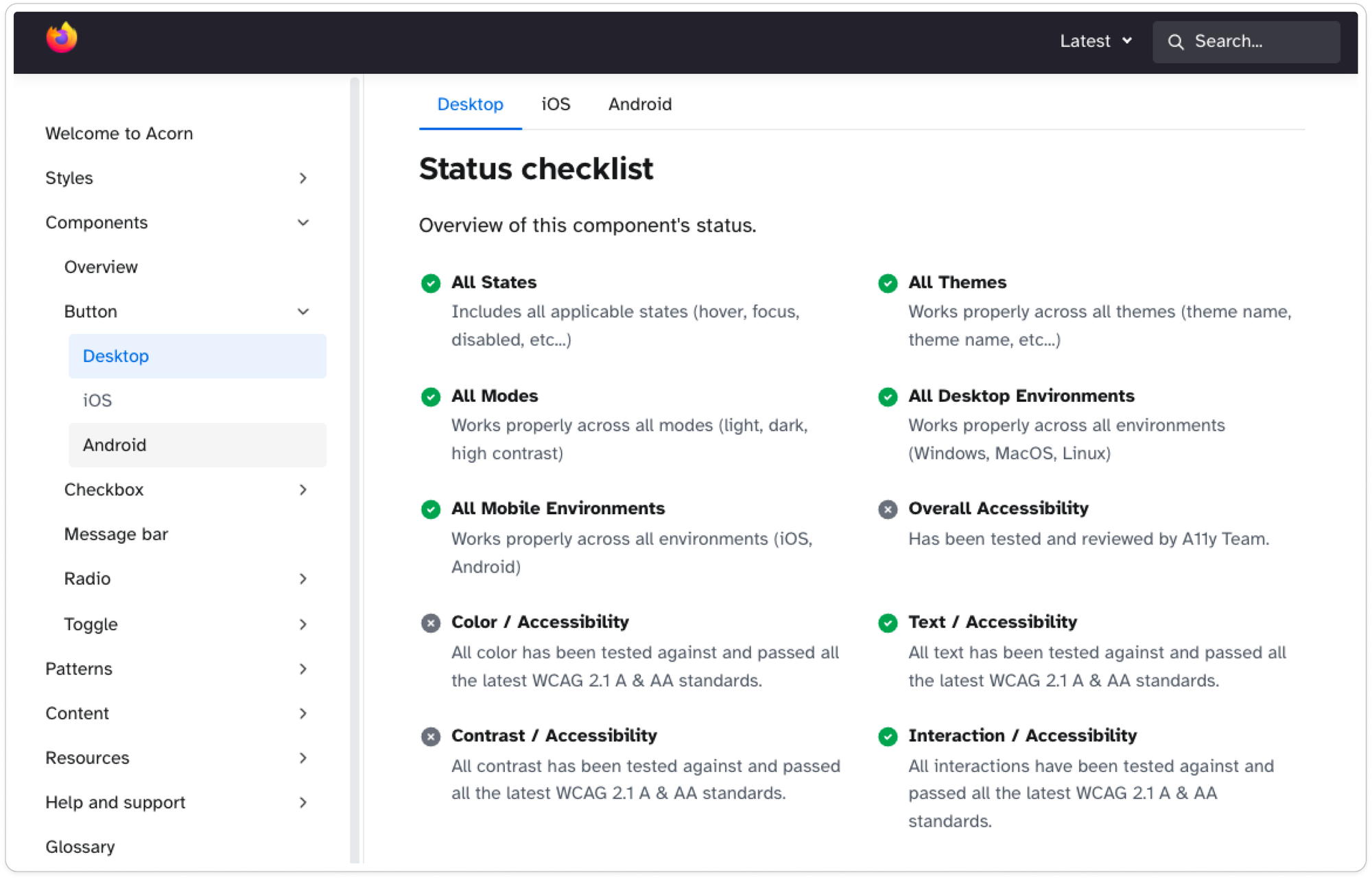 Use tables, component checklists, shortcut links, and more to write easy-to-understand guidelines for your design system.