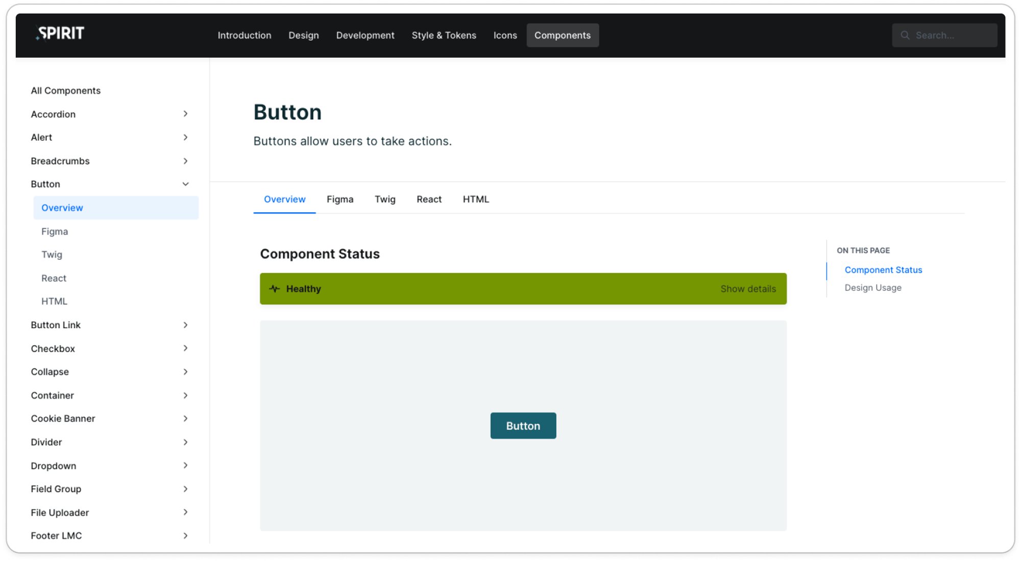 This versatile block is perfect for displaying the necessary development or compliance aspects of an individual component. Select which component properties, including links to code repositories and Figma, you’d like to highlight on each component page to help keep your design and development workflows methodical and efficient.