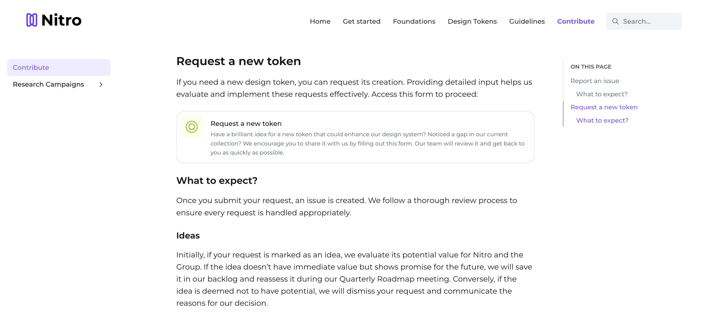 Nitro’s team has implemented a contribution model that includes an open feedback loop. Using forms, team members can submit token requests, encouraging continuous improvements and making it easy for contributors to propose changes.
