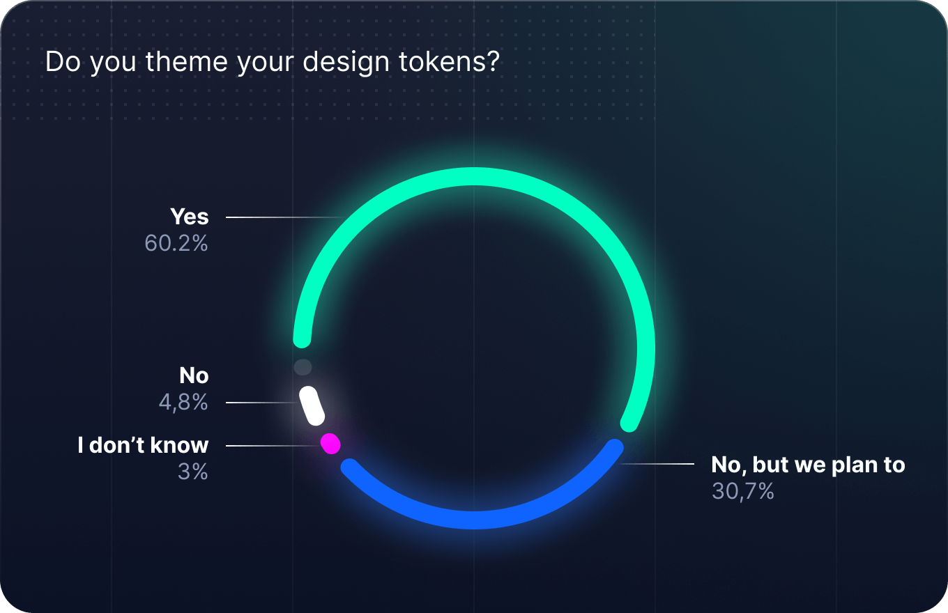 Theming is a powerful way to augment your design tokens and our respondents seemed to agree. 60.2% said that they’re theming their design tokens, while 30.7% said they’re planning to despite not doing it right now. But more importantly, why are people theming their design tokens?