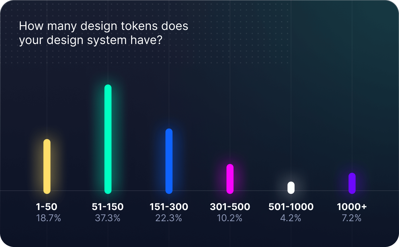We asked and learned that only 7% of respondents answered that they have more than 1000 tokens, and on the other side, 19% said they have less than 50. The majority 60% have between 50-300 design tokens, but what does that tell us?