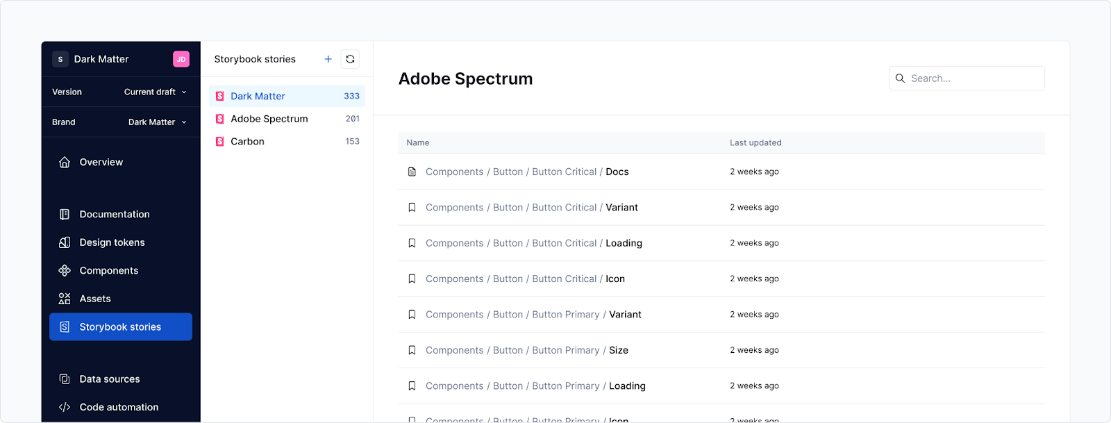 You can even see and manage all imported Storybook stories from one place, with information on when they were last updated, making it easier to verify if everything was imported properly.