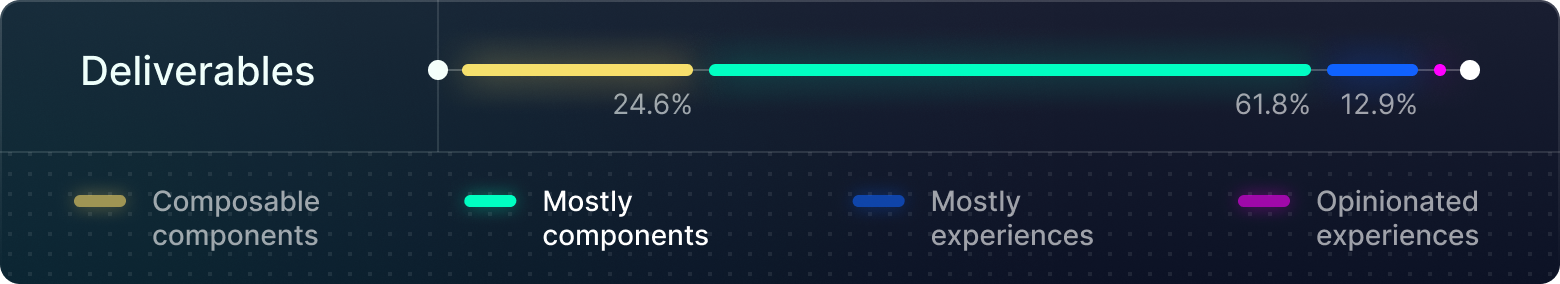 Components still reign supreme when it comes to design systems, with 86.4% of respondents reporting their design systems being more component-heavy rather than focused on patterns or experiences.