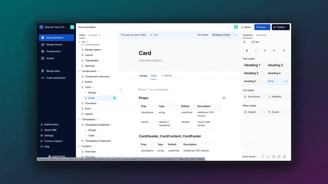 A well-documented design system eliminates guesswork, fosters collaboration, and accelerates adoption by providing everything engineers need—from live component previews to practical usage guidelines.