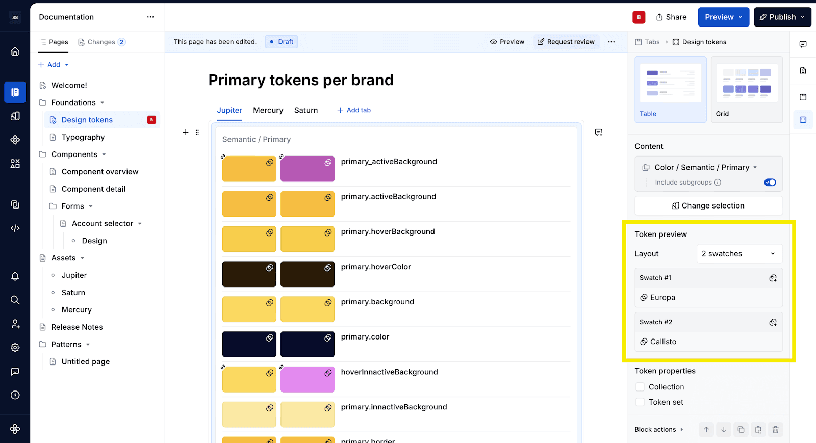You can sync each collection to its corresponding Brand in Supernova, and Supernova will handle the rest—preserving your naming, structure, and themes across the board. Later, in your documentation, you can use Token Swatches inside a Token Block to visually represent these themes per brand.