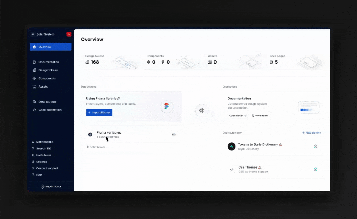 - Hit “Push to Supernova”, and your tokens will be imported, ready for use in documentation or code exports.