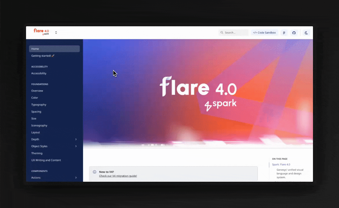 - Flare DS adopted a multi-design system navigation approach to document different major versions of its system.